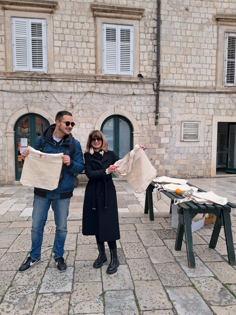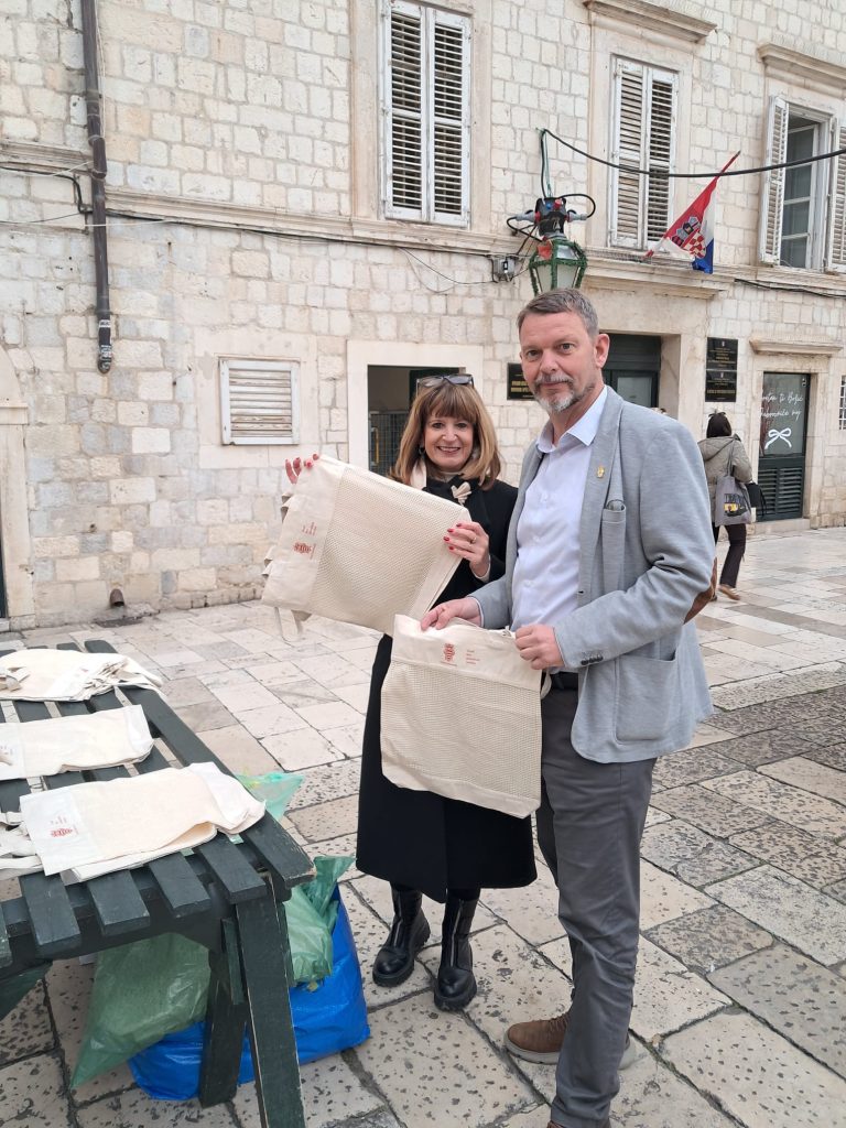 I ove godine Upravni odjel za urbanizam, prostorno planiranje i zaštitu okoliša Grada Dubrovnika organizirao je dijeljenje vrećica prihvatljivih za okoliš od recikliranog platna s prigodnim natpisom “Dubrovnik – Grad bez plastičnih vrećica” na placi u Gradu.